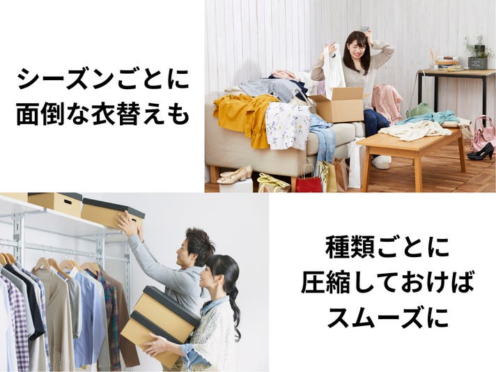 (※衣類の素材によって圧縮しやすさは変わります。)