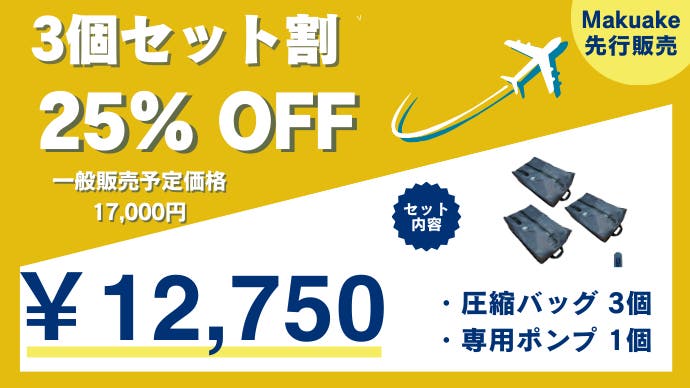 「3個セット割」完成した圧縮バッグ3点 電動ポンプ1個