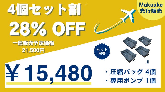 「Makuake割」完成した製品×1セット【圧縮バッグ2点 専用電動ポンプ1点】