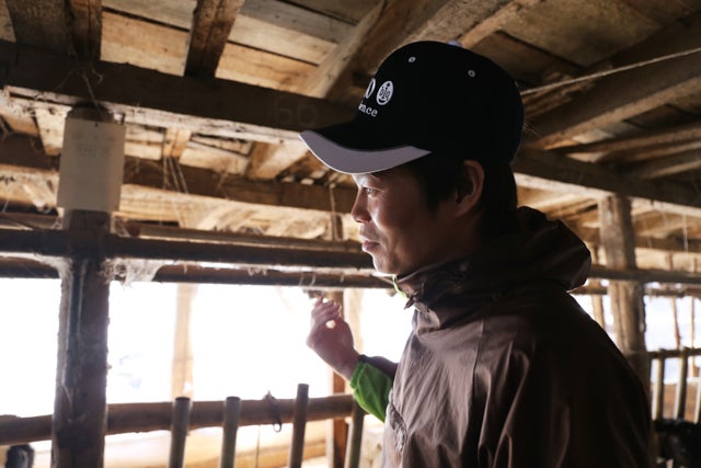 幼い頃から牛舎の仕事を手伝っていたという向牧場の3代目、県内でも最年少の酪農家の勇輔さん。幼い頃から稼業を手伝い、北海道の大学で酪農を学んだ後、ご両親と一緒に向牧場を切り盛りしています。