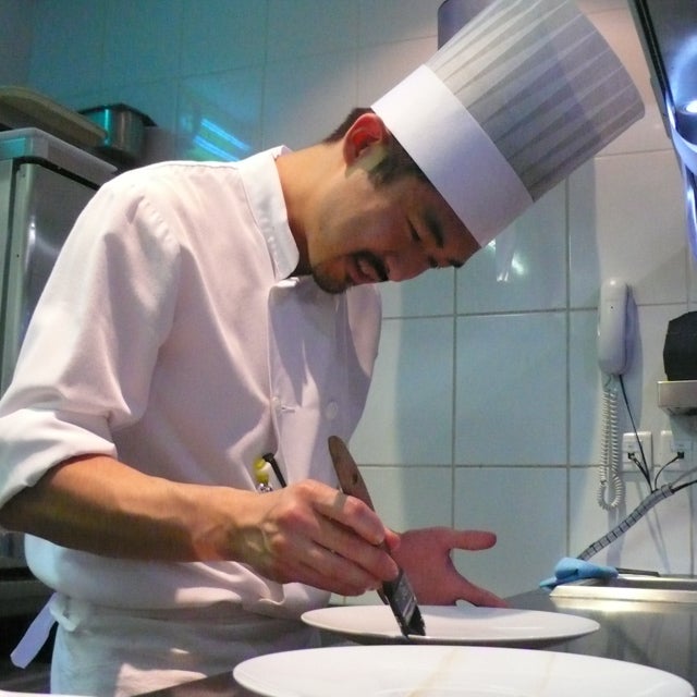 レストランではアラミニット(フランス語でその場で仕上げるという意味)!冷たい物は冷たく、温かい物は温かく、ひとつのお皿の上で表現します。時間との闘いを身をもって体感しすることができました。