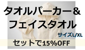 オーガニックコットンを100%使用した今治タオルパーカーと、パーカーと同じオーガニックコットンを100%使用した今治のフェイスタオルが、セットで15%OFF!!