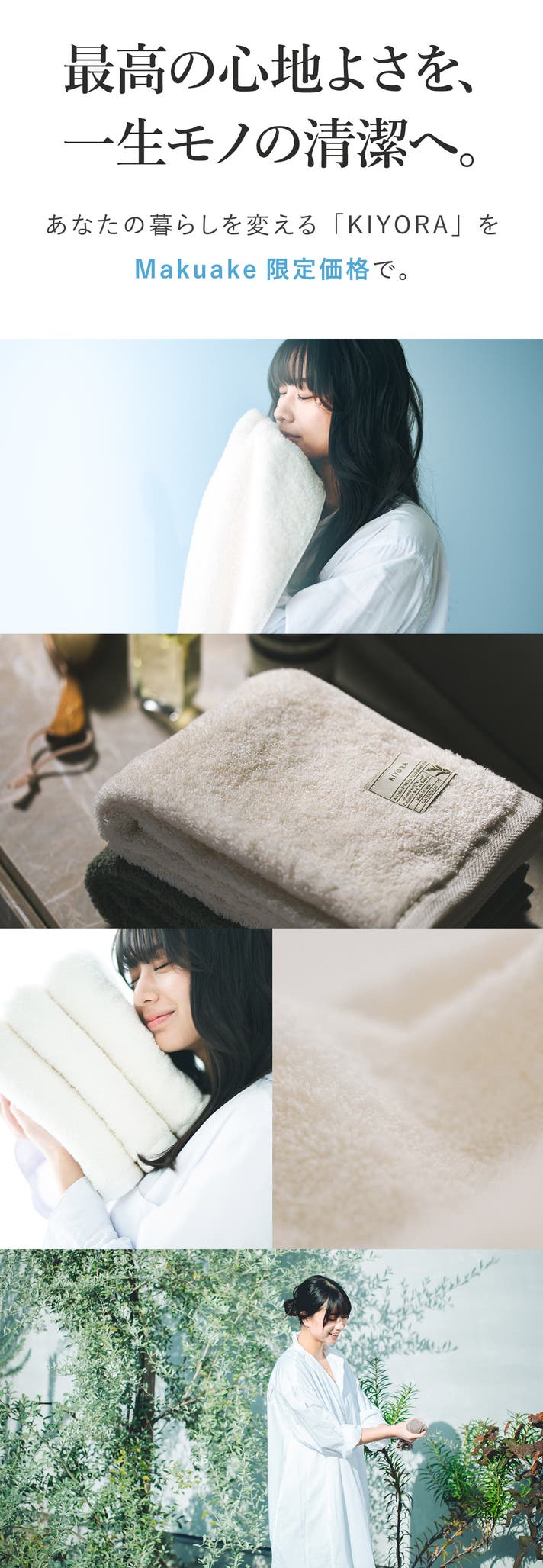 「Makuake(マクアケ)」は、実行者の想いを応援購入によって実現するアタラシイものやサービスのプラットフォームです。このページは、 ファッションカテゴリの 「ただのタオルじゃない。繊維そのものが菌を減らし続ける。今治産タオルKIYORA」プロジェクト詳細ページです。