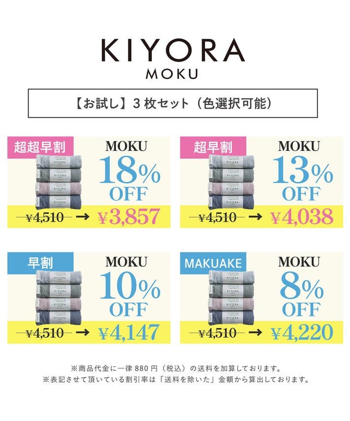 ■「MOKUタオル」のカラーは以下の4色からお選びいただけます。