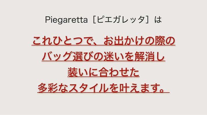 本プロジェクト、Piegaretta[ピエガレッタ]も、使うたびに「自分なりの正解」が見つかっていくような、長く寄り添える存在でありたいと考えています。