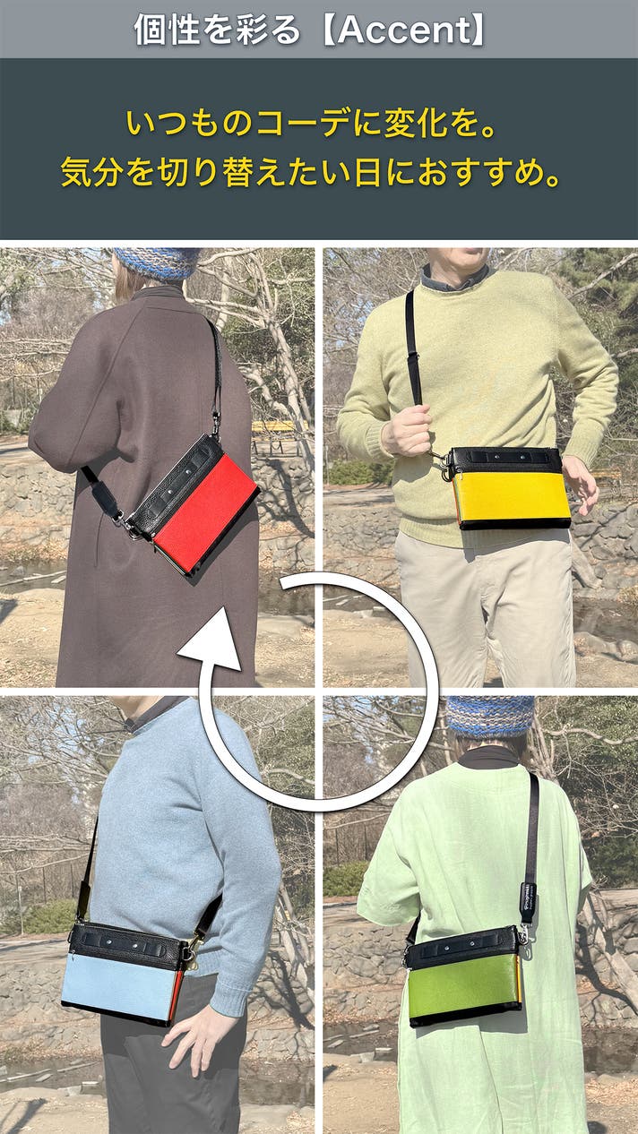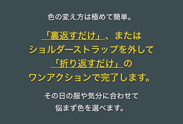- パタッ!と【4色チェンジ】今日の服に色が合わない悩みをスマートに解決できる、新感覚ショルダー