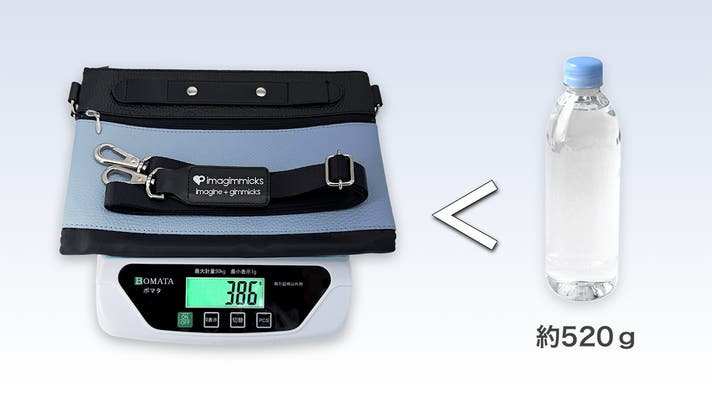 ショルダーストラップ込みで、約390gと非常に軽量。