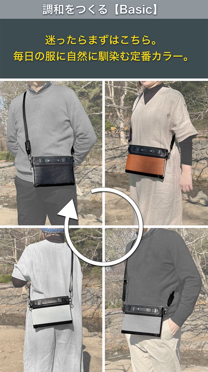 4色を切り替えて使える本革バッグだから