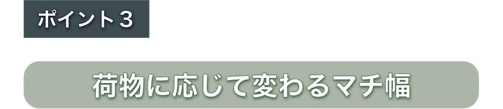 荷物に応じてマチ幅がスマートに変化します。