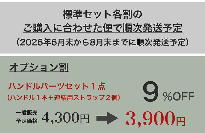 → 標準セットに同梱して、2026年8月末までにお届けする予定です。
