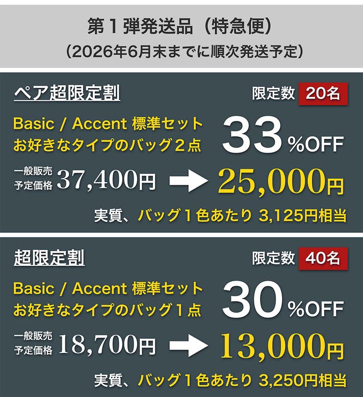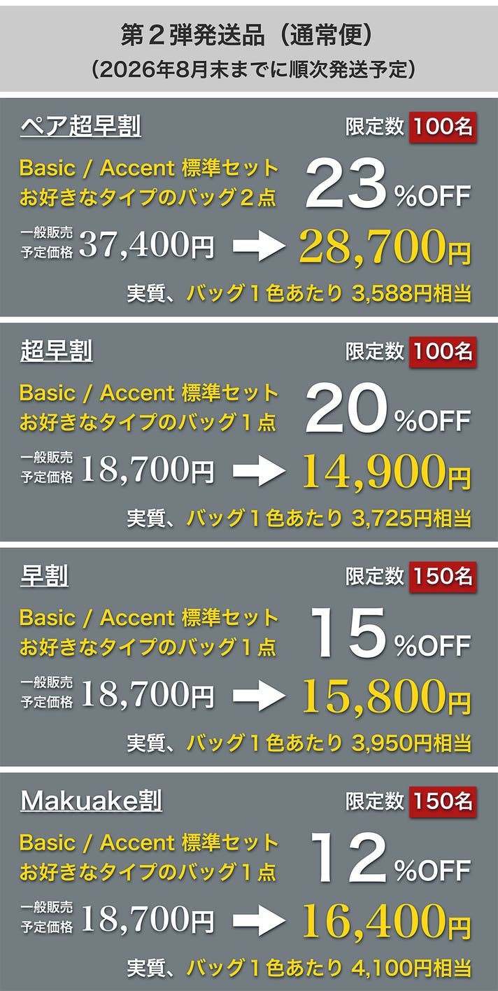 ※ Basic[ベーシック]タイプを2点、または、Accent[アクセント]タイプを2点でのご選択も可能です。