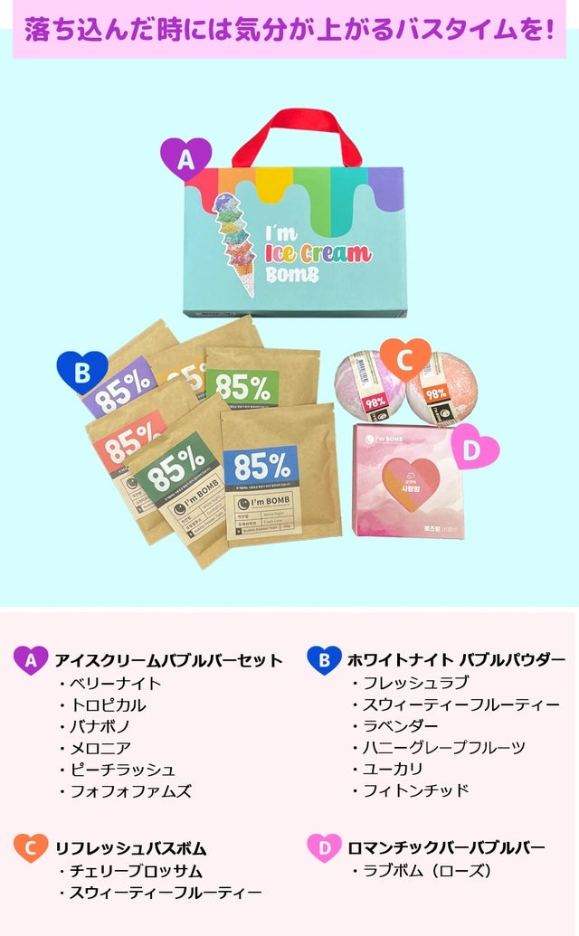 - カラフルで豊かな香りが魅力の泡風呂グッズ、ナチュラル志向ブランド『I’mBOMB』ギフトセット