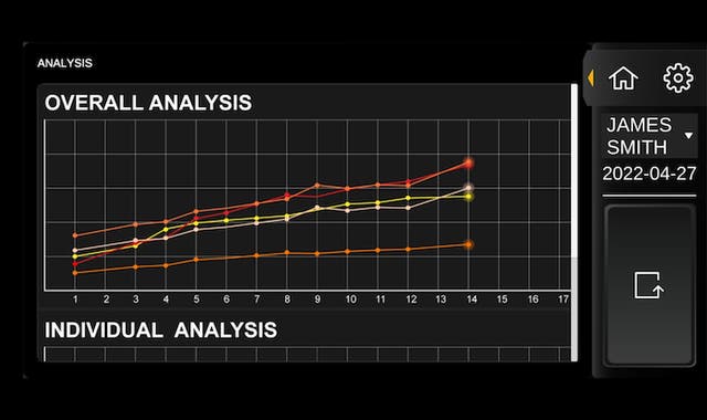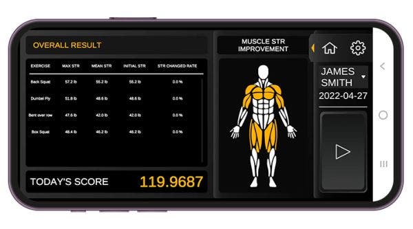 皆様の最大筋力を分析して該当運動の目標値が提示され、運動時に筋力がリアルタイムで測定されモニタリングできるので、目標値から0.1kgでも高めようと力を入れる自分に向き合うことができます。