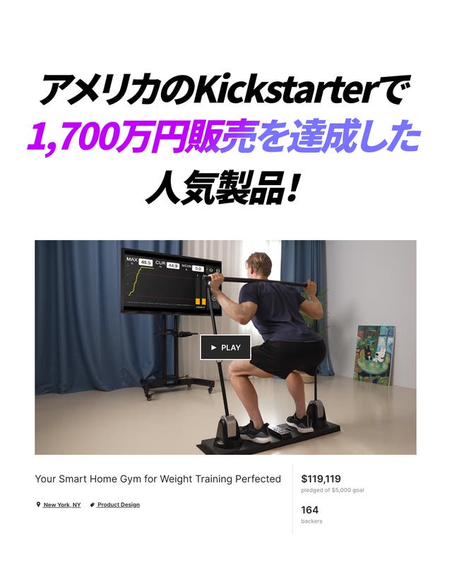 IM.GYMはアメリカのKickstarterで164名のサポーター様から約1,700万円のご支援を頂いた製品です。