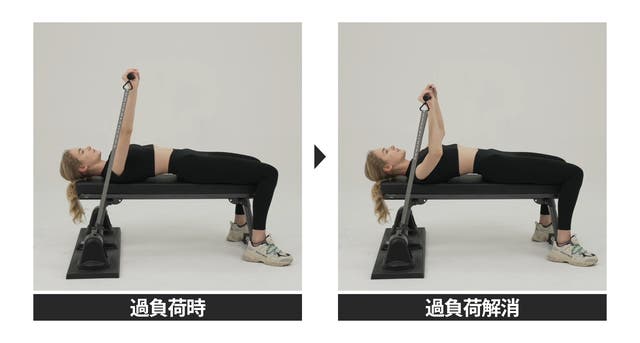 一方で、IM.GYMは弾性バンドを引っ張る長さによって細かく増量でき、過負荷時に引っ張る力を 少し抜くと過負荷が解消されるので、ケガのリスクを抑え安全に筋トレができます。