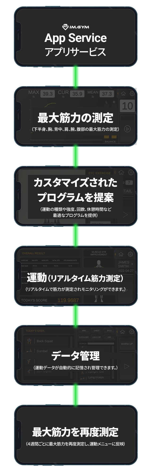 また、IM.GYMは皆様からわざわざ調節しなくても、測定データを基に毎日目標値を少しずつ高めて提供するので、漸進的な過負荷運動が自動的に行われるように管理してくれます。