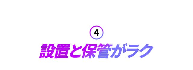 狭い室内でも使用でき、使用後は隙間等狭いスペースに保管することができます。