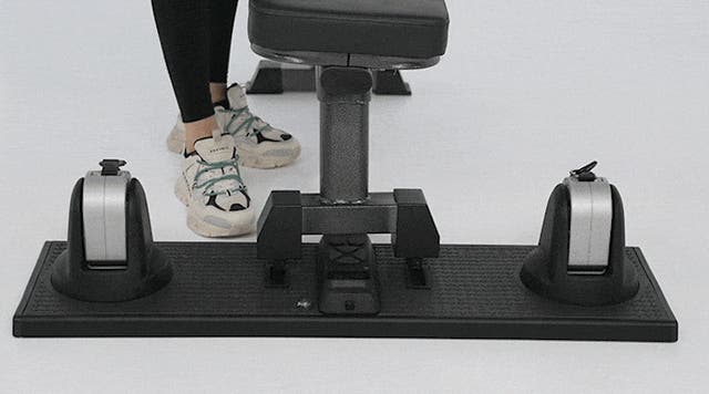 トレーニングベンチを使う場合、ベンチに繋がったフットスイッチを押せば簡単にバンドの長さ調節ができます。