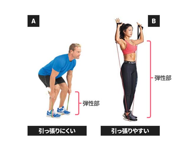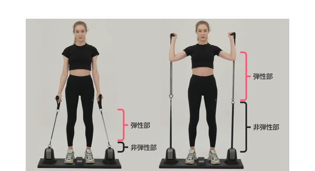 従って、運動種目及び運動姿勢が変われば手で引っ張る弾性部の長さも変わるため、同じバンドでもどの運動にどの程度の弾性抵抗が作用するか予測することが非常に難しいです。