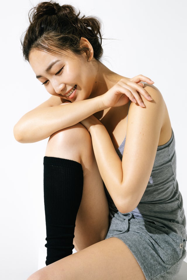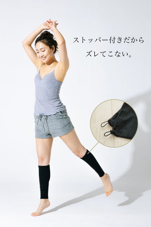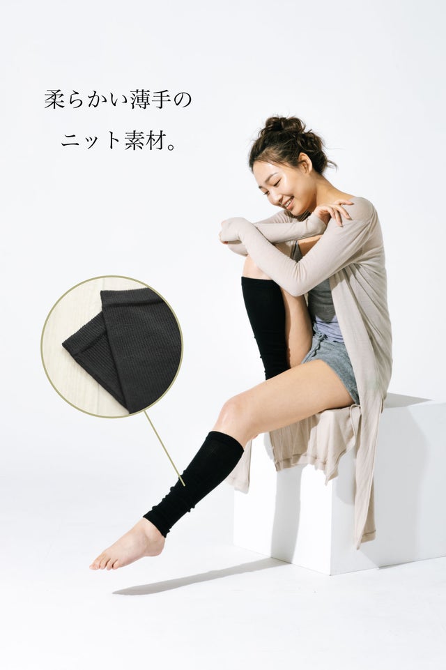 薄手のニットレッグウォーマー。就寝時に使用すれば、翌朝のスッキリした脚に感動していただけるはず。オールシーズン使用することができ、アームウォーマーとしてもご利用いただけます。