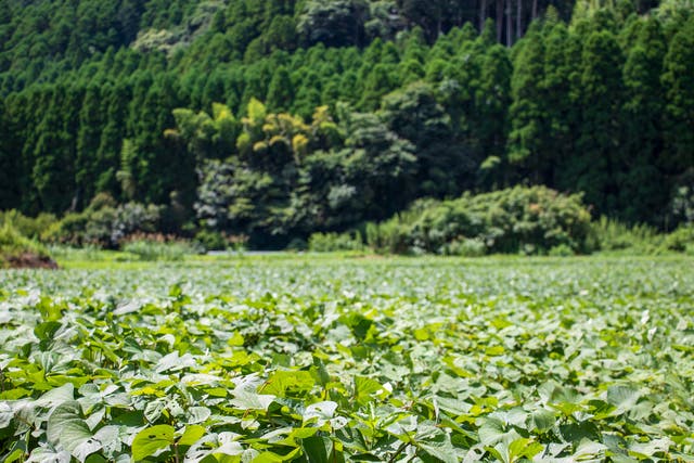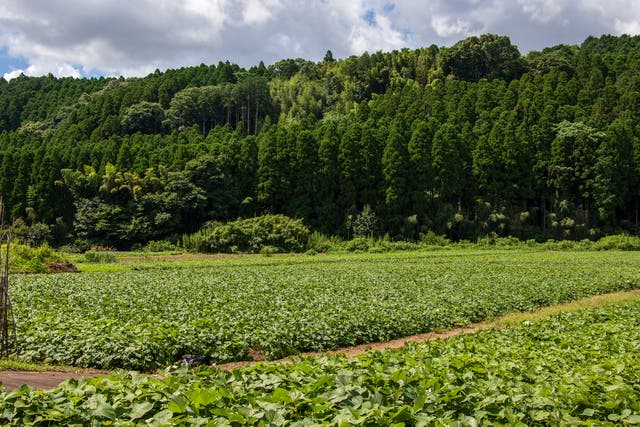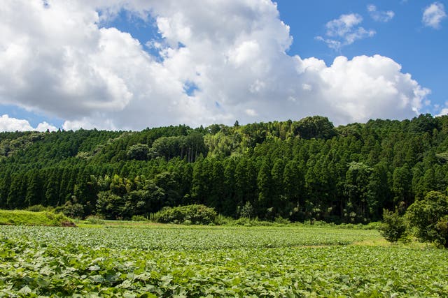 熊本県大津町の大自然の中に青々と広がる芋畑