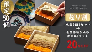 【早割15%OFF】水晶9個2セット、金箔体験&九谷焼豆皿1セット
