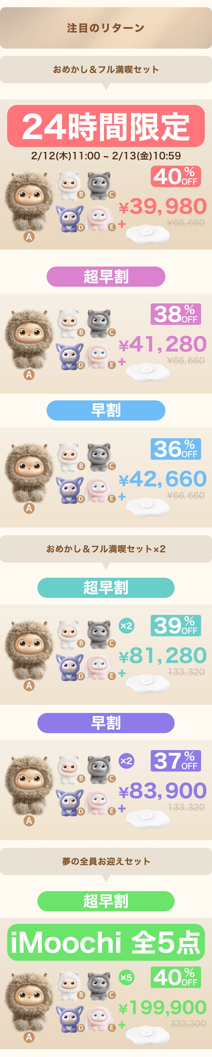 【超早割30名様限定・40%OFF】夢の全員お迎えセット×5