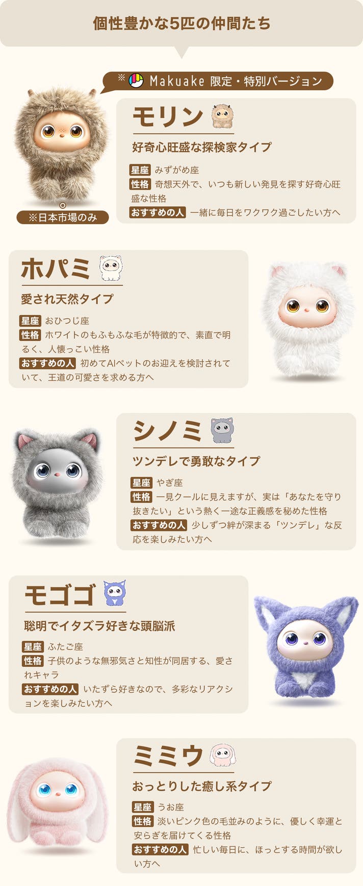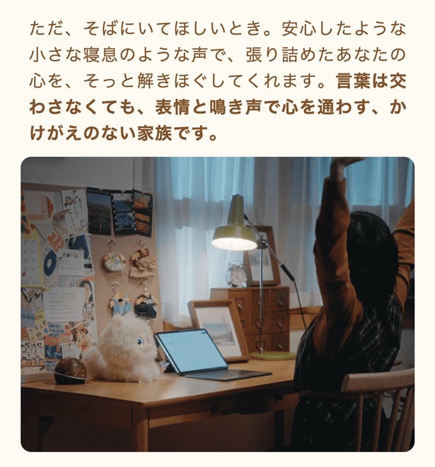 - あなたの行動や声のトーンで気持ちをくみ取り、あなただけの特別な存在へ成長します。