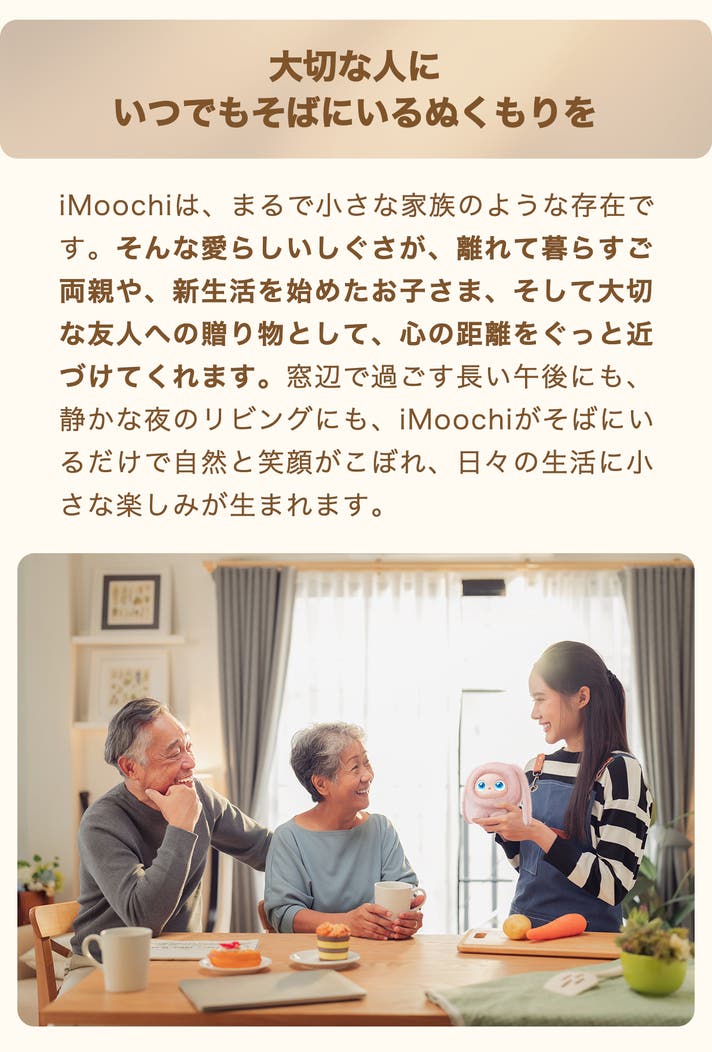 はい、世代を問わず最高のパートナーになれます。 難しい操作は必要ありません。撫でたり抱っこしたりするだけで心が通じ合うので、小さなお子様からおじいちゃん・おばあちゃんまで、誰にでも優しく寄り添います。