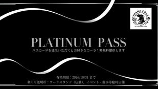 ・プラチナパスをご提示いただくことで、ドリンクメニューからお好きなコーラを1杯サービス(700円相当)で提供いたします。