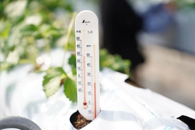 美味しいいちごが一定に出来るよう、温度管理をこまめにこだわっています。一気に温度が上がりすぎてしまうと赤くなるだけで、糖度が上がりきることができません。甘くて美味しいいちごを作る為には、じっくりと時間をかけて育てていくことが大切!