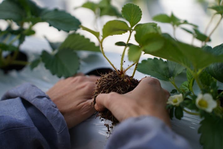 形がよく、甘いいちごを沢山成らせるためには、「根の張り」が重要とのこと。しっかりとした根づくりをするために必要な土の要素は、以下が必要です。