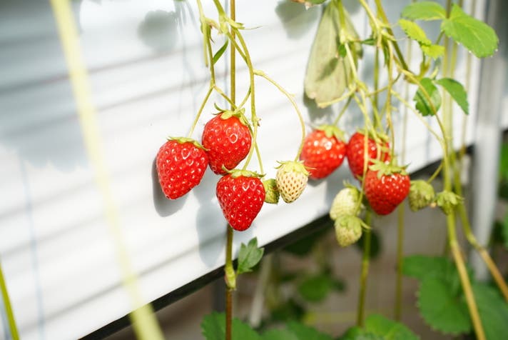 - ミネラル豊富な富士山の伏流水、甲府盆地の寒暖差の高い気候と長い日照時間の中で栽培されるいちご