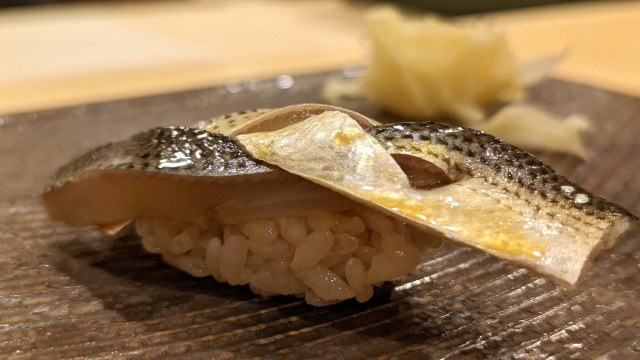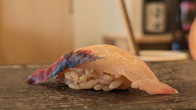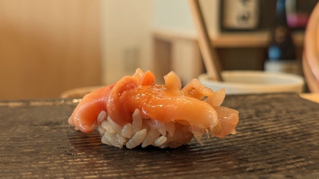 酢の締め加減も程よく、赤酢のシャリとよく合います。