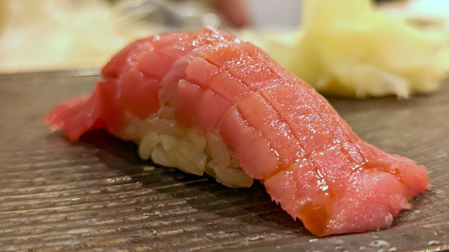 この日のマグロは、千葉県勝浦産の天然本鮪。