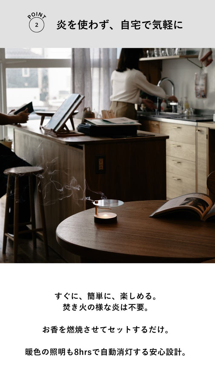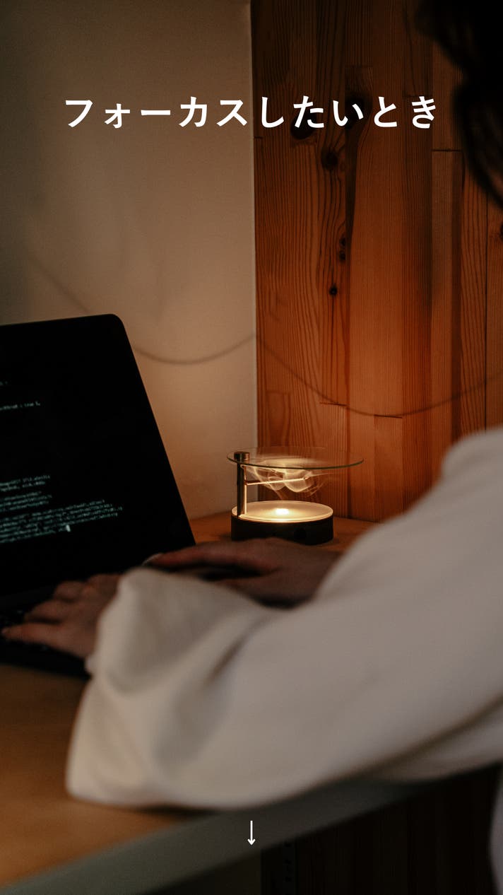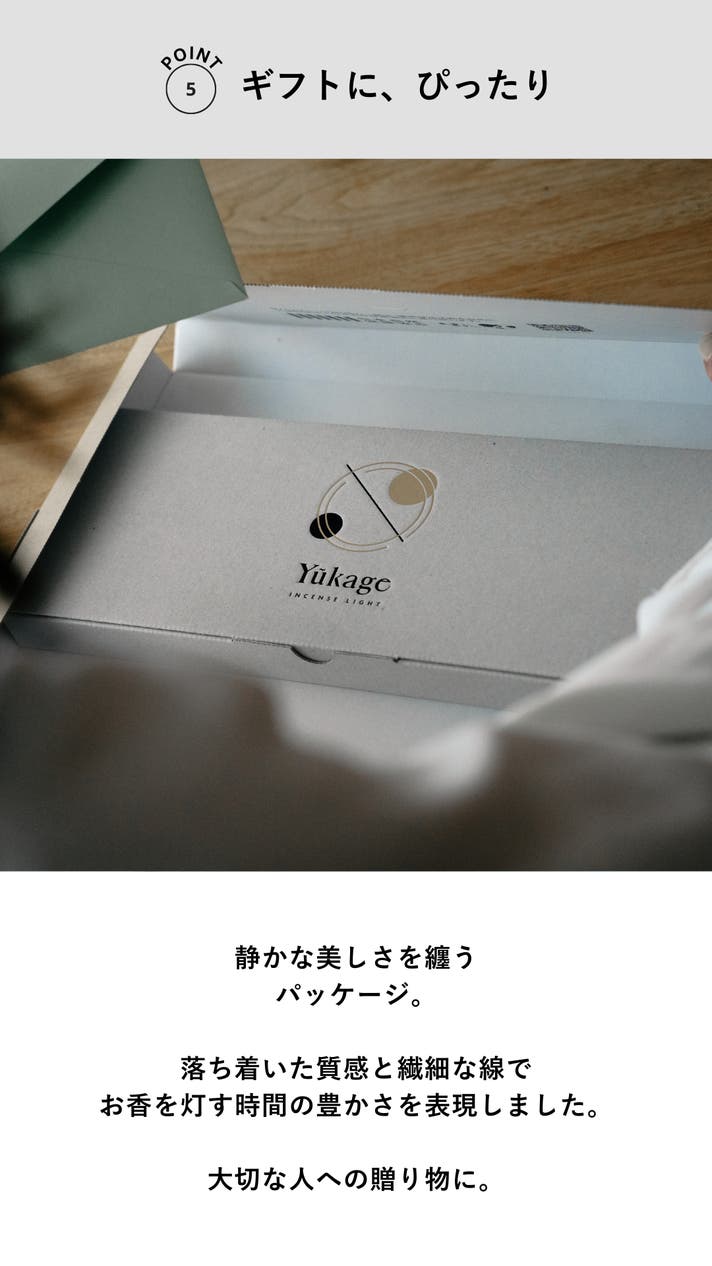そんな私自身と同じように、忙しい現代の中で心の余白を増やす時間を取れていない方に、Yukage(ユウカゲ)のINCENSE LIGHT(インセンスライト)を、お使いいただきたいと考えています。INCENSE LIGHTの見える香りに、意味はありません。電車の到着時刻のように、あなたにとって意味があるものではありません。見える香りは、ただ、あなたの隣りでゆっくり移ろい、香りと余白を届けます。余白によって、今まで見過ごしていた大切なことに気づいたり、近くの誰かに優しくなれるかもしれません。