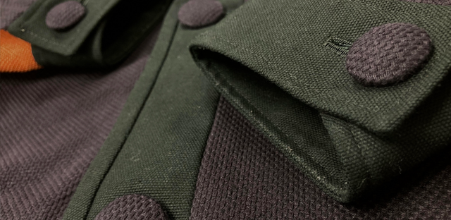 ・ボディの生地と同じ刺子生地を使用したオリジナルクルミボタン
