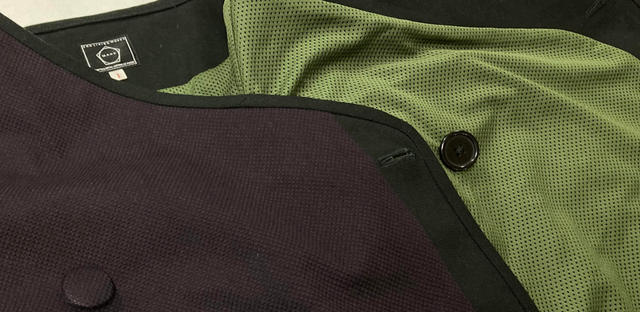 ・裏地は袖通りをよくし、半そでの上から着用したときのベタつきを解消するメッシュ素材