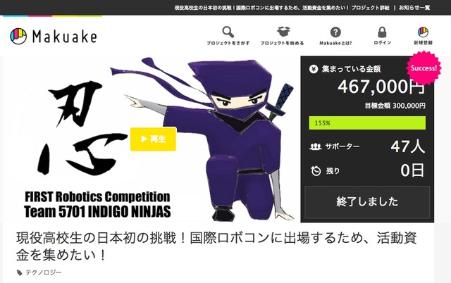 「Makuake(マクアケ)」は、実行者の想いを応援購入によって実現するアタラシイものやサービスのプラットフォームです。このページは、 テクノロジーカテゴリの 「【2016】現役高校生が国際ロボコンFRC再挑戦!目指せチャンピオンシップ出場!」プロジェクト詳細ページです。