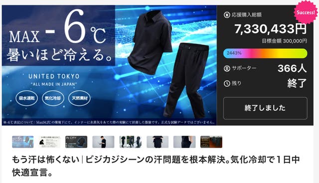 「Makuake(マクアケ)」は、実行者の想いを応援購入によって実現するアタラシイものやサービスのプラットフォームです。このページは、 ファッションカテゴリの 「【アンコール】もう汗は怖くない|ビジカジシーンの汗問題を解決。気化冷却で1日快適」プロジェクト詳細ページです。