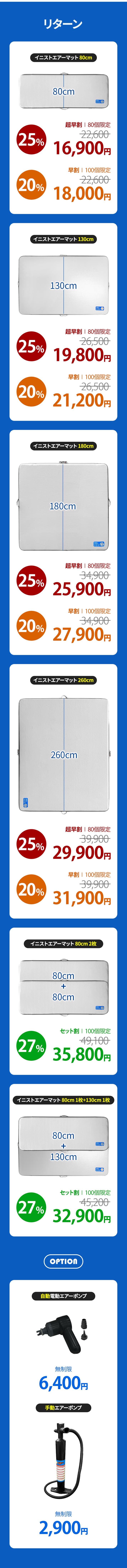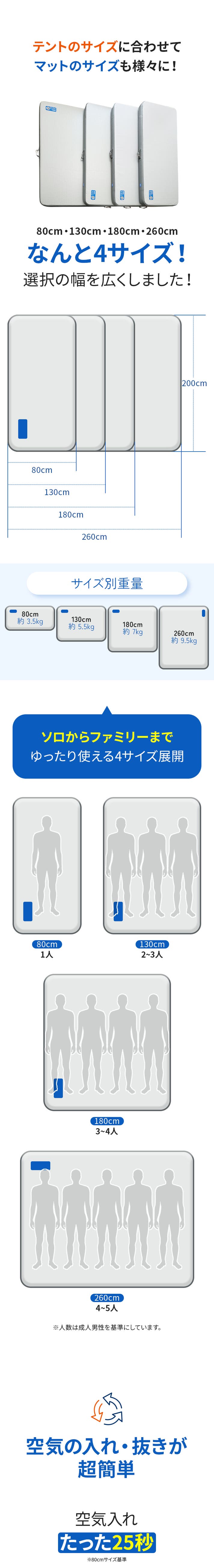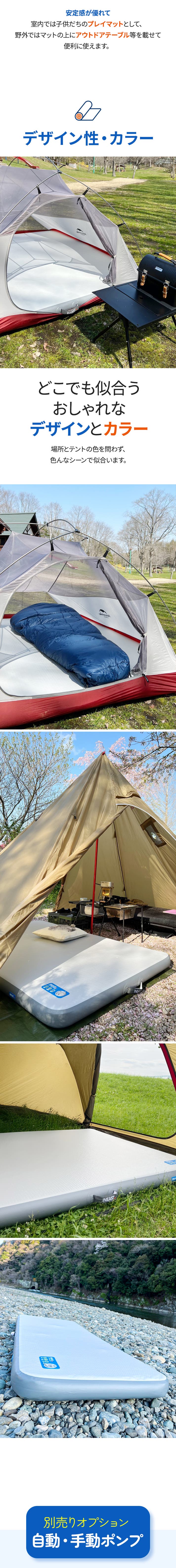2. エアーマットはPVC材質で温度が低くなる時期には温度変化による硬化現象が発生することがございます。 空気注入の前/後にしばらく常温で保管してからご使用ください。