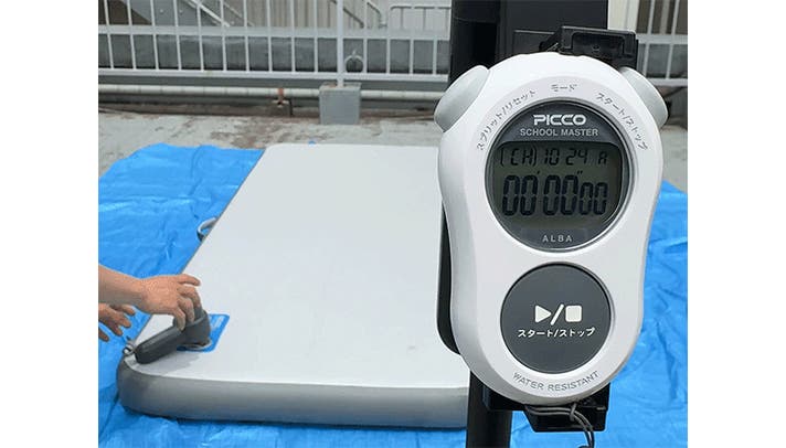 A:入れる空気の量によって、マットの硬さを調節することができます。空気の量が少ないと柔らかめで多いと硬めになります。空気量によって振動なども差異がございます。