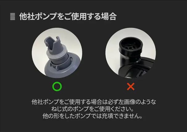 ※適合するポンプをお持ちでない方は、オプションのポンプを応援購入してください。