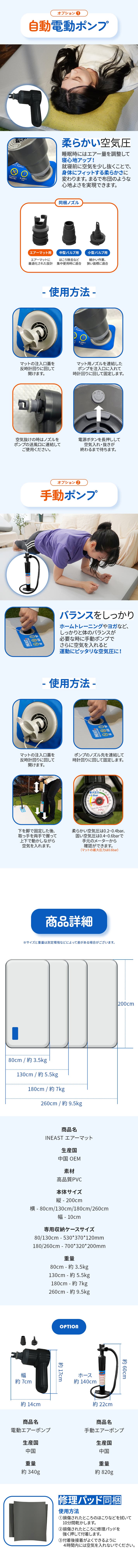 -低騒音につきまして、実際に寝返りを繰り返し実施した際に旧モデルは最大70dB、INEASTエアーマットは最大47dBの測定値を元にしております。