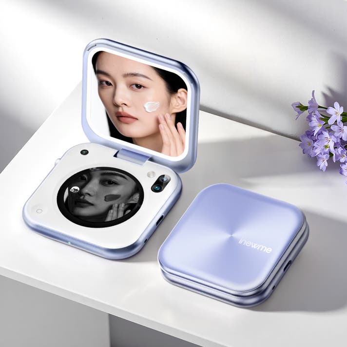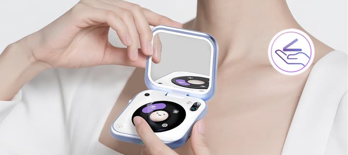 一見するとコンパクトな手のひらサイズの鏡ですが、その内部にはAI判定機能、UVカメラモジュール、環境センサー、多機能ライトなど、複数の分野の技術を基に開発された、美容とライフスタイルを結びつける製品です。