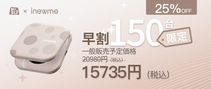 リターン品の配送が完了するまで、株式会社KIBUはinewmeの日本における独占販売権を有する正規代理店です。詳細に関しては、ページ下部のリスク&チャレンジをご確認ください。