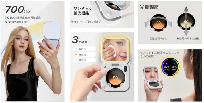 - メイクの仕上がり、ひと目で変わる!UVチェック・補光・環境検知を一台に集約。