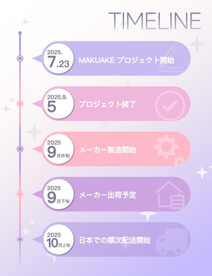 このプロジェクトはAll in型です。目標金額の達成に関わらず、プロジェクト終了日の2025年09月05日までに支払いを完了した時点で購入が成立します。