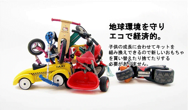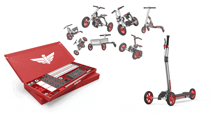 - キックボードはもちろん。三輪車・電動スクーターまでブロックのように作ることができます。