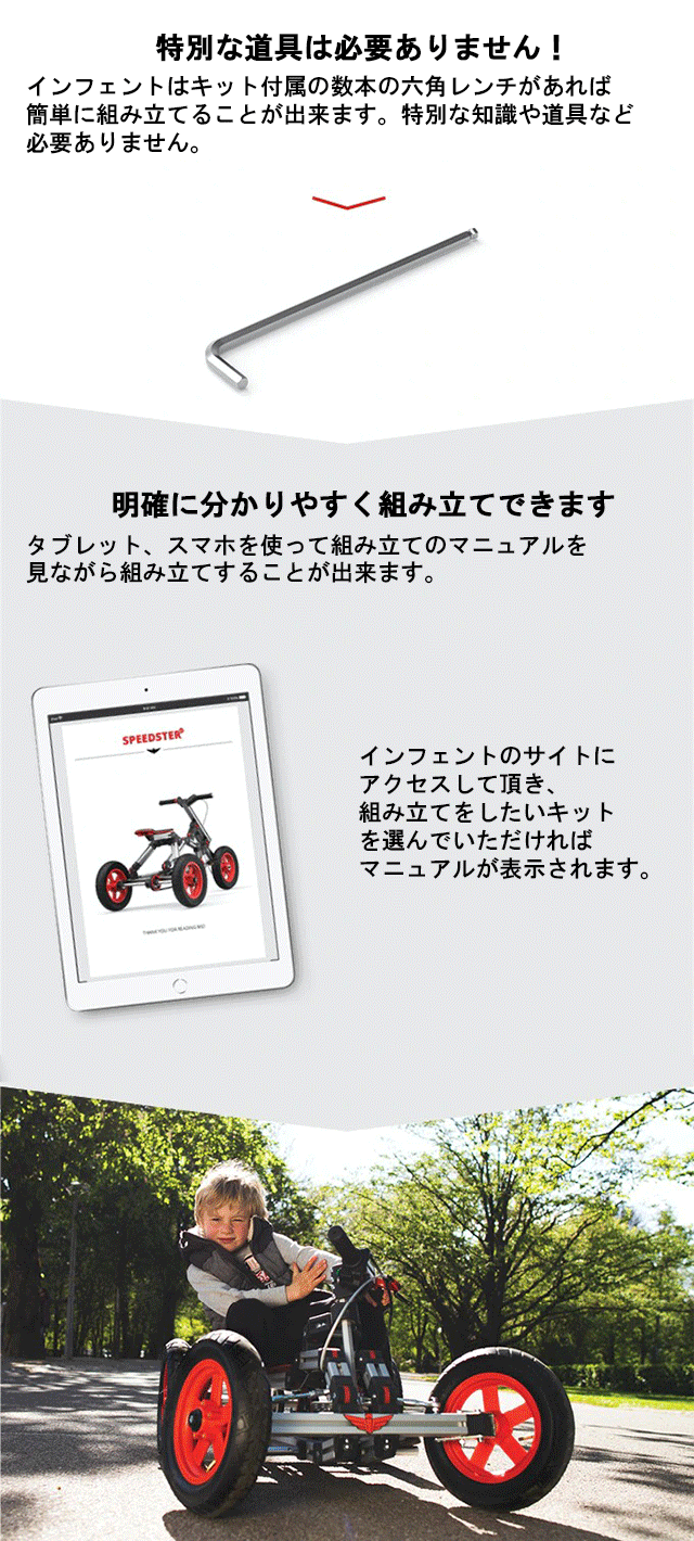 25台以上のライドが作れます。子供と一緒に作成しながら、秘めたクリエイティブな才能を発揮するチャンスが得られます。有名なスピードスターのペダルゴーカートを構築したり、Whirlでゆったりドリフトしたりして楽しめます。再設計されたBikerでバイクファン受けも間違いなし。